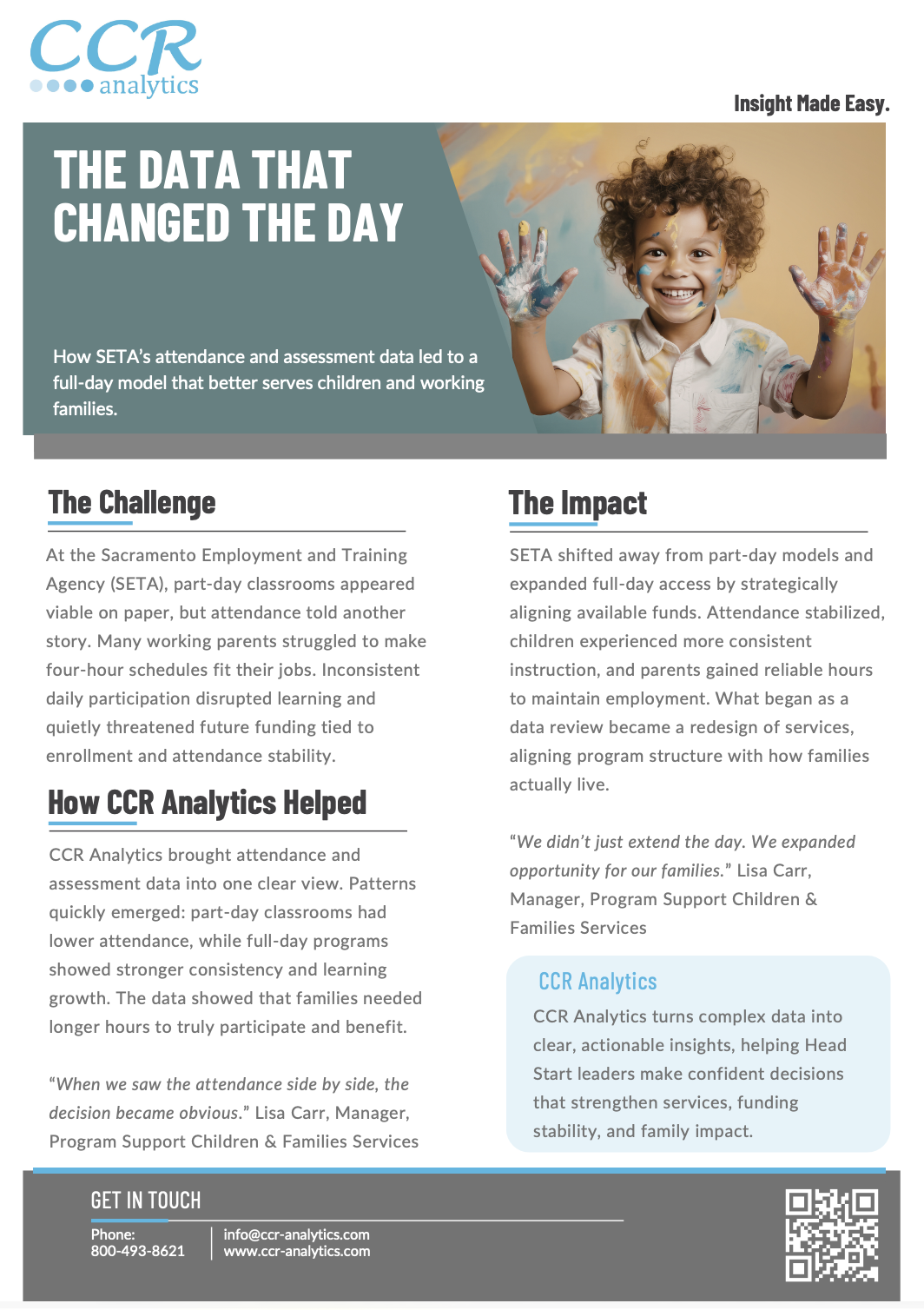 The data that changed the day case study explores how SETA’s use of CCR Analytics’ attendance and assessment data led to a full-day model that better serves children and working families.
