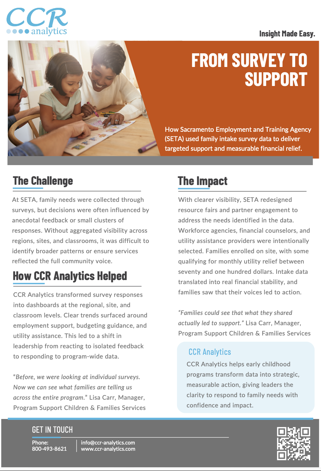 The from survey to support case study explores how SETA used CCR Analytics’ family intake surveys and reports to deliver targeted support and measurable financial relief.