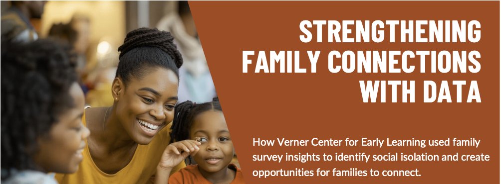 The strengthening family connections with data case study explores how Verner Center for Early Learning used CCR Analytics’ insights to identify family isolation and create opportunities for families to connect.
